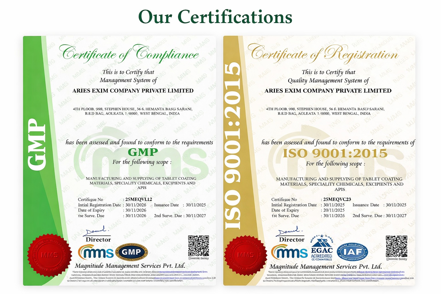 Aries Exim, an ISO 9001:2015, one of the fastest growing companies engaged in the business of research, manufacturing and marketing of TabSafe ready-mix film coating system for the pharmaceuticals. We provide affordable and reliable PHARMACEUTICAL COATING solutions complying with Global Quality standards.
